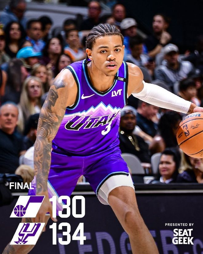 随着大卫琼斯一记超自信干拔三分不中让马刺与爵士在打成122平后绝杀失败双方进入加时,好在加时圣城依旧很稳最终以134-130击败爵士,取得两连胜有人说下半场双方是菜鸡互啄强行
